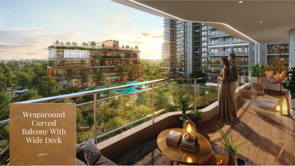 • Wraparound curved balconies and sunlit interiors in every apartment