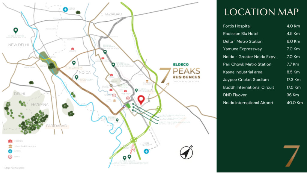 Close to the Noida–Greater Noida Expressway, Yamuna Expressway, GT Road, and Eastern Peripheral Expressway, enabling easy travel across Delhi NCR